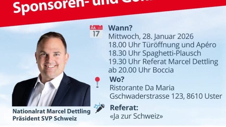 Ein besonderer Abend für Unterstützerinnen und Unterstützer – mit hochkarätigem Besuch aus Bundesbern: Nationalrat Marcel Dettling, Präsident der…